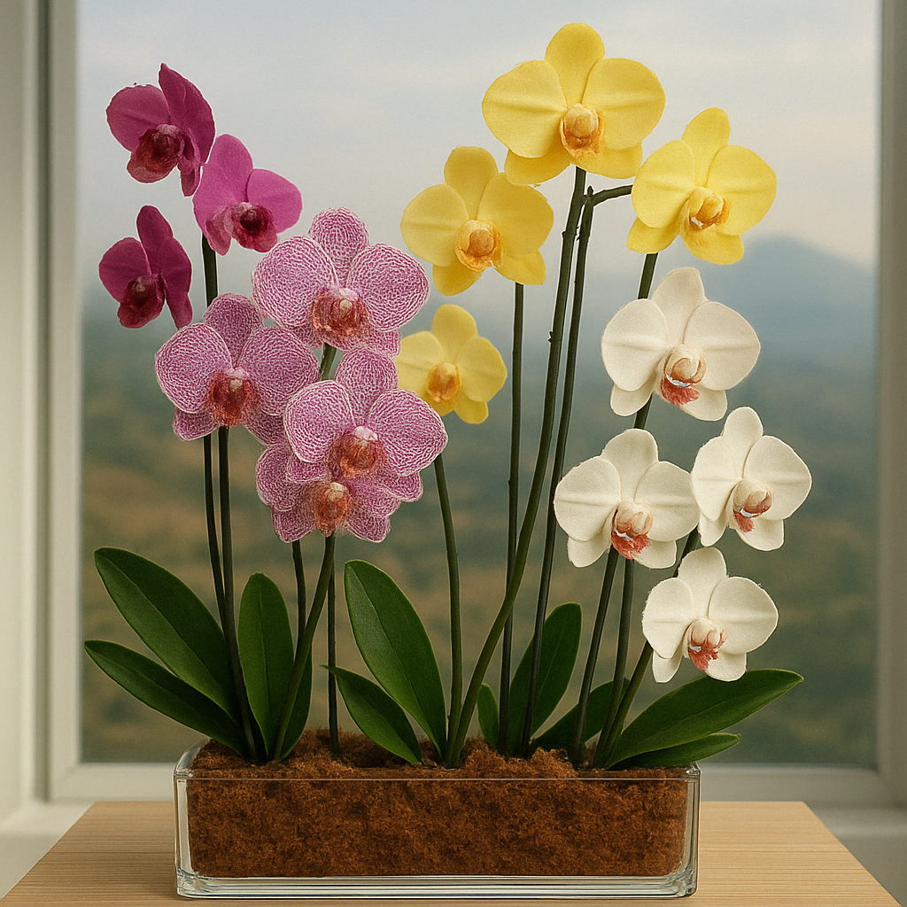 Busca tu orquídeaOrquídeas elegidas por su belleza y carácter natural. Presentadas en bases refinadas con detalles únicos.